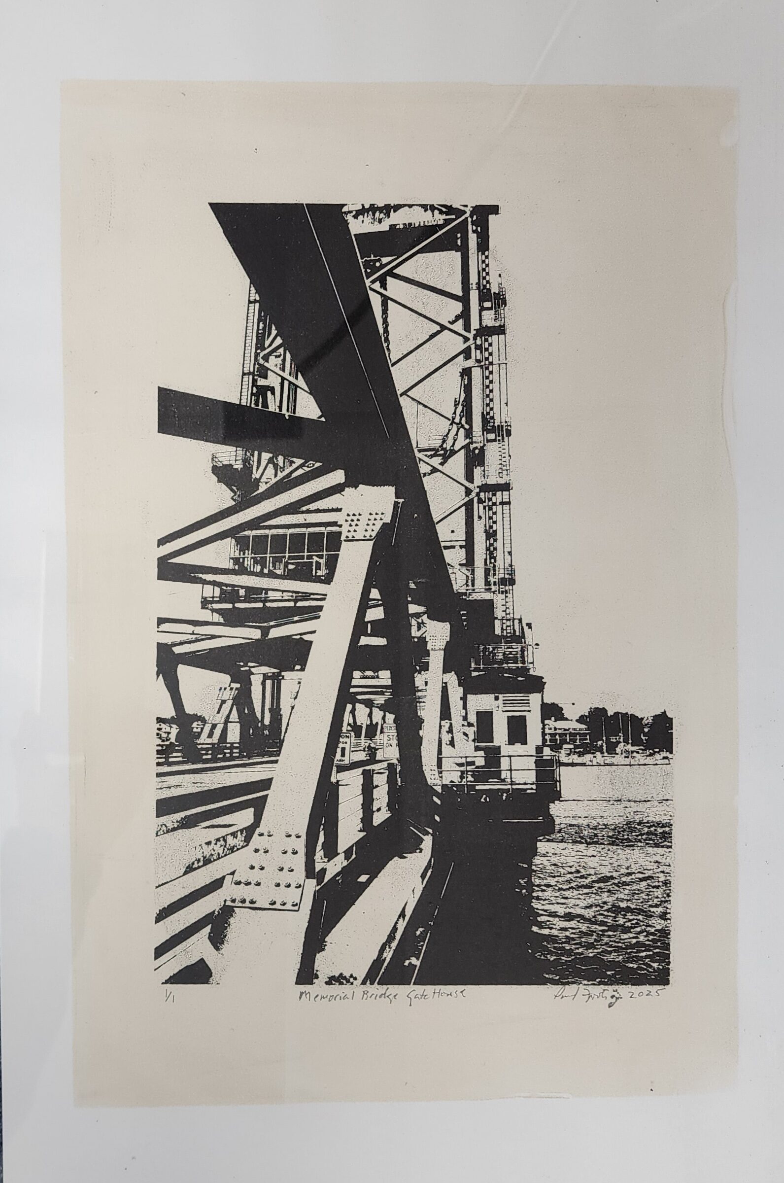 Cat Fishing, Laconia NH, 8×10 Monotype on Paper